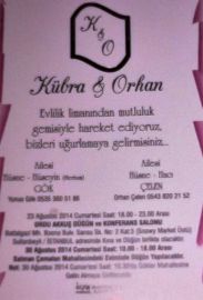 Evlilik limanından mutluluk gemisiyle hareket ediyoruz, bizleri uğurlamaya gelir misiniz… Kübra & Orhan Diyorlar Ki Bir eşi olmalı insanın Rüzgâr onun kokusunu getirmeli Yağmur onun sesini Akşam onu görecek diye pır pır etmeli yüreği Ayakları birbirine dolaşmalı heyecandan, eve dönerken Cennetten köşe almışçasına Sevdiği, sakındığı bakmaya kıyamadığı… Her bir hücresinde aşkın fışkırdığı Çölde okyanusu yaşadığı bir eşi olmalı insanın ! Düğünümüzde sizleri de görmek dileğiyle… Kaynak : Orhan ÇELEN |
